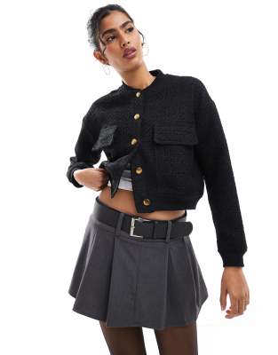 Επισκέψου το κατάστημα Asos για να δεις περισσότερες λεπτομέρειες και φωτογραφίες για το Style Cheat boucle textured button up bomber jacket in black. Για αγορά του Style Cheat boucle textured button up bomber jacket in black πρέπει να επισκεφτείς το κατάστημα Asos.