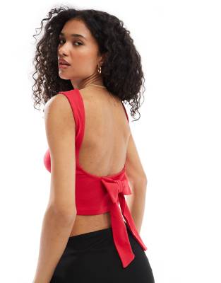 Επισκέψου το κατάστημα Asos για να δεις περισσότερες λεπτομέρειες και φωτογραφίες για το Stradivarius open back top with tie back in red. Για αγορά του Stradivarius open back top with tie back in red πρέπει να επισκεφτείς το κατάστημα Asos.