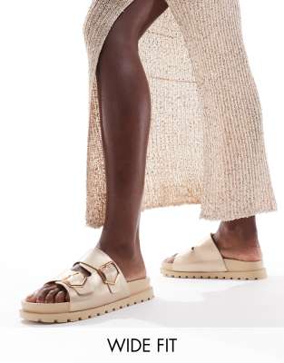 Shoes by London Rebel Wide Fit Sun's out toes out Adjustable straps Pin-buckle fastening Open toe Flat sole Wide fit