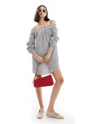 Dresses by Threadbare For your weekend mood board Stripe design Bardot neck Volume sleeves Regular fit