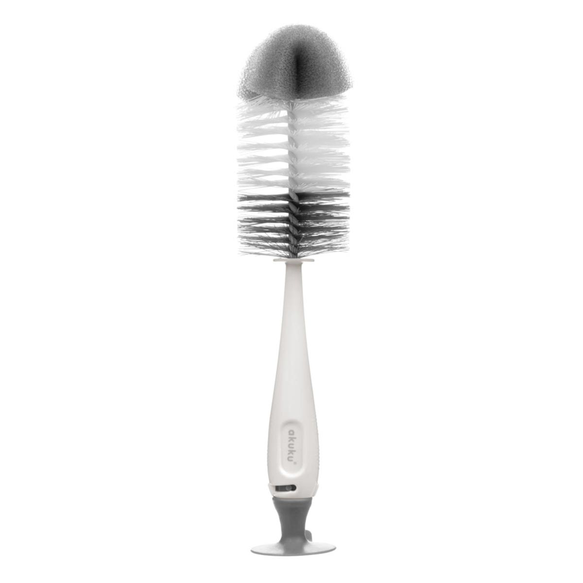 Βούρτσα καθαρισμού μπιμπερό σε γκρι χρώμα από την εταιρία Akuku. Είναι κατασκευασμένη από πλαστικό χωρίς BPA. Στο κάτω μέρος της βούρτσας υπάρχει βεντούζα για να στέκεται σε οποιαδήποτε επίπεδη επιφάνεια. Οι απαλές τρίχες που διαθέτει και το σφουγγάρι στην άκρη καθιστούν την βούρτσα ιδανική για να καθαρίσει ακόμη και τα πιο δύσκολα σημεία των μπιμπερό. Επιπλέον στο κάτω μέρος της βούρτσας μαζί με την βεντούζα, υπάρχει και μία μικρή βούρτσα ιδανική για τον καθαρισμό των θηλών.