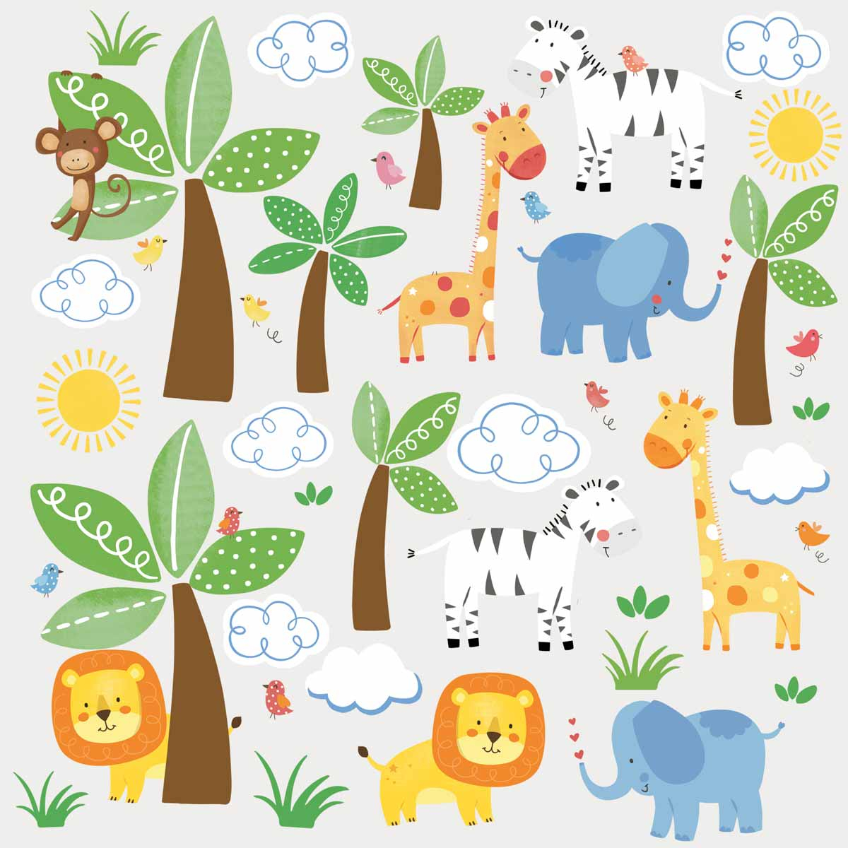 Παιδικά ποιοτικά και κομψά αυτοκόλλητα RoomMates με φιγούρες ζώων της ζούγλας, ιδανικά για unisex δωμάτιο. Τα αυτοκόλλητα είναι τυπωμένα σε διάφανο υλικό και για αυτό συνιστώνται λευκοί ή ανοιχτόχρωμοι τοίχοι για καλύτερα αποτελέσματα. Δεν αφήνουν σημάδια και υπολείμματα στον τοίχο κατά την αφαίρεσή τους. Η συσκευασία περιλαμβάνει 4 φύλλα με 47 αυτοκόλλητα συνολικά. Διαστάσεις αυτοκόλλητων από 3 x 3 εκ. μέχρι 24 x 32 εκ.