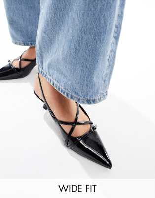 Shoes by ASOS DESIGN Wide Fit Your new fave pair Strappy design Pin-buckle fastening Ankle strap Pointed toe Mid point heel Wide fit