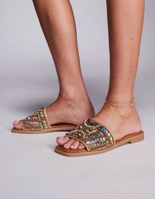 Shoes by AZALEA WANG Slip-on style Embellished strap Open toe Flat sole