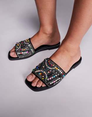 Επισκέψου το κατάστημα Asos για να δεις περισσότερες λεπτομέρειες και φωτογραφίες για το Azalea Wang embellished flat sandals in black. Για αγορά του Azalea Wang embellished flat sandals in black πρέπει να επισκεφτείς το κατάστημα Asos.