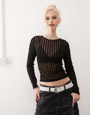 Tops by Collusion Today's uniform Crew neck Long sleeves Sheer stripe design Slim fit