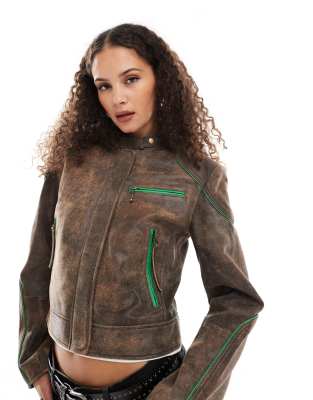 Επισκέψου το κατάστημα Asos για να δεις περισσότερες λεπτομέρειες και φωτογραφίες για το Urbancode leather boxy racer jacket in brown and green. Για αγορά του Urbancode leather boxy racer jacket in brown and green πρέπει να επισκεφτείς το κατάστημα Asos.