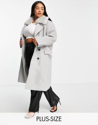 Plus-size coat by Forever New That new-coat feeling Notch lapels Detachable faux-fur trim Double-breasted style Button placket Side pockets Regular fit