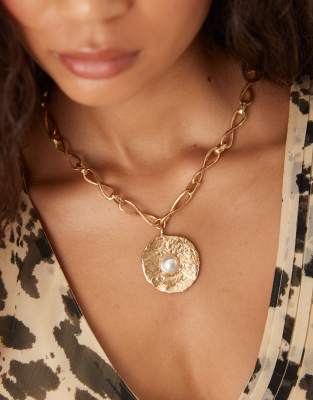 Accessories by Mango Fine chain Hammered pendant Faux-pearl detail Adjustable length Lobster clasp
