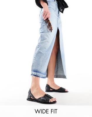 Shoes by ASOS DESIGN Wide Fit Style with sunshine Weave design Slip-on style Peep toe Flat sole Wide fit