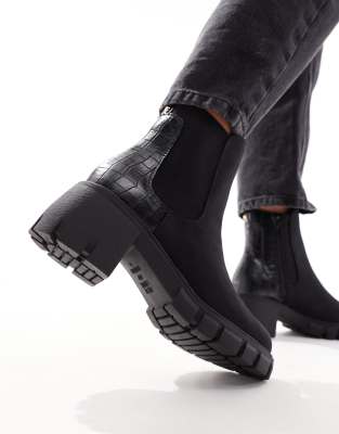 Shoes by New Look Reboot in progress Pull tabs for easy entry Zip-side fastening Faux-croc print Elasticated inserts Chunky sole Mid block heel