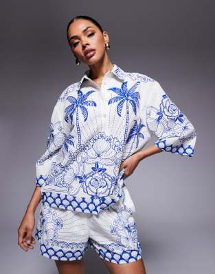 Tops by River Island All-over print Spread collar Button placket Drop shoulders Boxy fit