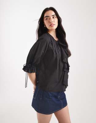 Επισκέψου το κατάστημα Asos για να δεις περισσότερες λεπτομέρειες και φωτογραφίες για το ASOS DESIGN ruffle front top with pleat detail and tie front in black. Για αγορά του ASOS DESIGN ruffle front top with pleat detail and tie front in black πρέπει να επισκεφτείς το κατάστημα Asos.