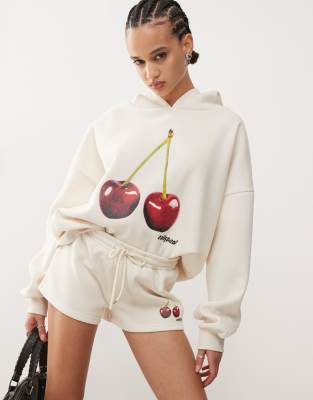 Shorts by Edikted Part of a co-ord set Hoodie sold separately High rise Elasticated drawstring waist Graphic and logo print Regular fit
