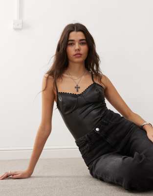Επισκέψου το κατάστημα Asos για να δεις περισσότερες λεπτομέρειες και φωτογραφίες για το Miss Selfridge faux leather bodysuit with lace trim in black. Για αγορά του Miss Selfridge faux leather bodysuit with lace trim in black πρέπει να επισκεφτείς το κατάστημα Asos.