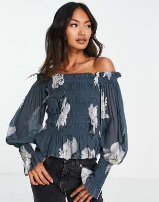 Tops by AllSaints Your new go-to Floral design Bardot neck Long sleeves Regular fit