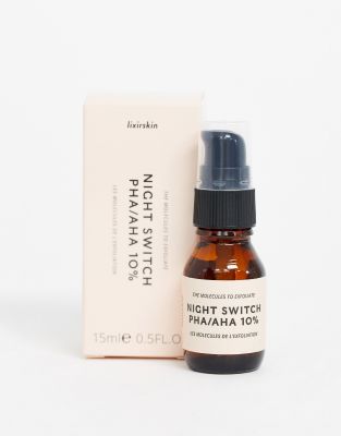 Night Switch PHA/AHA 10% by Lixirskin Supercharged skincare Formulated with a blend of three acids Designed to exfoliate and remove dead and strongly pigmented skin cells while encouraging cell turnaround Lactic acid helps boost hydration lactobionic acid helps reduce oxidative stress and phytic acid helps detoxify the skin of heavy metals Works to promote an even skin tone and a radiant plumper softer and smoother complexion Patch test required before use Product is non-returnable for hygiene reasons
