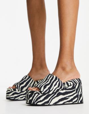 Shoes by ASOS DESIGN Shoe 'drobe stand-outs Zebra print Slip-on style Open toe High wedge heel