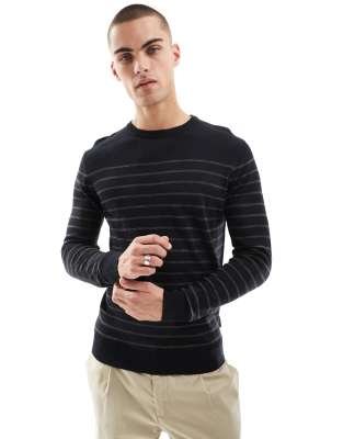 Jumpers & Cardigans by French Connection Mens Layer up Stripe design Crew neck Long sleeves Regular fit