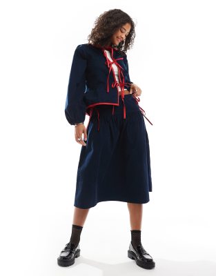 Επισκέψου το κατάστημα Asos για να δεις περισσότερες λεπτομέρειες και φωτογραφίες για το Wednesday's Girl cord tie-detail midi skirt in navy-Red. Για αγορά του Wednesday's Girl cord tie-detail midi skirt in navy-Red πρέπει να επισκεφτείς το κατάστημα Asos.