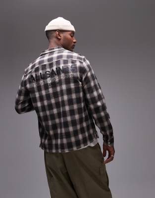Shirts by AllSaints Top-half options Check design Spread collar Button placket Long sleeves Logo print to chest and back Regular fit
