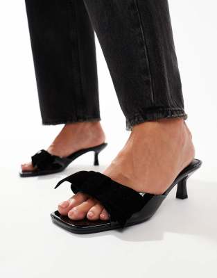 Shoes by ASOS DESIGN Wide Fit Slip-on staples Slip-on style Open toe Bow detail Flared heel