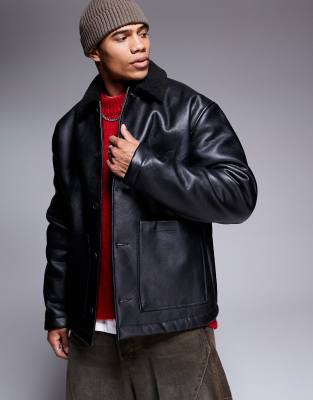 Επισκέψου το κατάστημα Asos για να δεις περισσότερες λεπτομέρειες και φωτογραφίες για το ASOS DESIGN faux leather oversized borg lined worker jacket in black. Για αγορά του ASOS DESIGN faux leather oversized borg lined worker jacket in black πρέπει να επισκεφτείς το κατάστημα Asos.