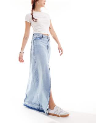 Επισκέψου το κατάστημα Asos για να δεις περισσότερες λεπτομέρειες και φωτογραφίες για το ONLY denim maxi skirt with frayed hem in blue. Για αγορά του ONLY denim maxi skirt with frayed hem in blue πρέπει να επισκεφτείς το κατάστημα Asos.