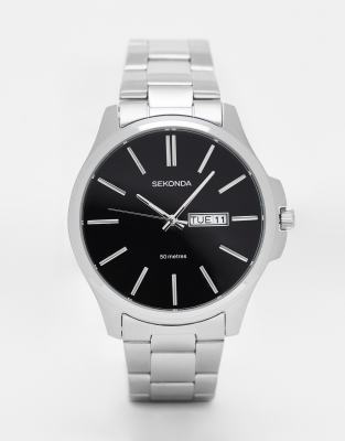 Watches by Sekonda Something for your wrist Bracelet strap Black dial Dash hour markers Date window Quartz movement Fold-over clasp Product will only be refunded if returned unworn/unused in its original packaging with all tags and labels attached