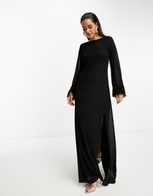 Dresses by TFNC Dress the part Boat neck Long sleeves Faux-feather cuffs Zip-back fastening Regular fit
