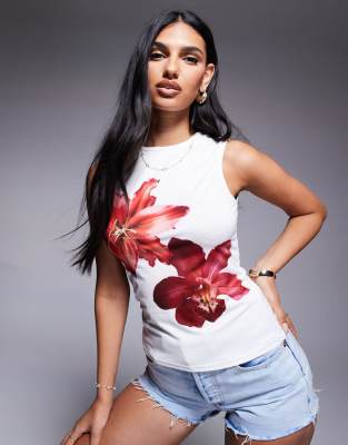 Επισκέψου το κατάστημα Asos για να δεις περισσότερες λεπτομέρειες και φωτογραφίες για το Missyempire hibiscus flower print vest top in white. Για αγορά του Missyempire hibiscus flower print vest top in white πρέπει να επισκεφτείς το κατάστημα Asos.