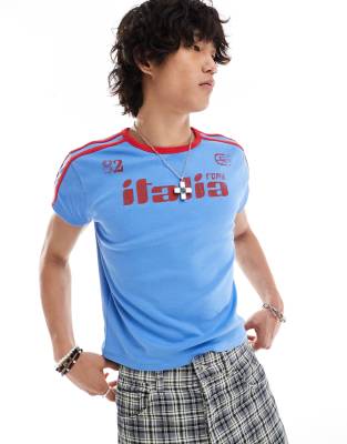 Επισκέψου το κατάστημα Asos για να δεις περισσότερες λεπτομέρειες και φωτογραφίες για το COLLUSION Italia print football top with cap sleeve muscle fit-Blue. Για αγορά του COLLUSION Italia print football top with cap sleeve muscle fit-Blue πρέπει να επισκεφτείς το κατάστημα Asos.