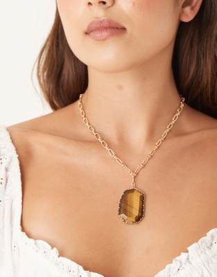 Accessories by ASOS DESIGN Link chain Tigers eye pendant Adjustable length Lobster clasp