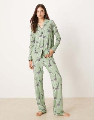 Επισκέψου το κατάστημα Asos για να δεις περισσότερες λεπτομέρειες και φωτογραφίες για το Chelsea Peers Exclusive Tall long sleeve revere & trouser pyjama set in sage green giraffe print. Για αγορά του Chelsea Peers Exclusive Tall long sleeve revere & trouser pyjama set in sage green giraffe print πρέπει να επισκεφτείς το κατάστημα Asos.