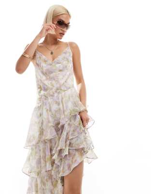 Dresses by Labelrail Collaboration with influencer Olivia Grace Herring Floral design Cowl neck Adjustable straps Ruffle trims Regular fit