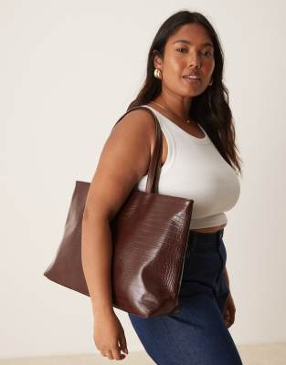 Accessories by Glamorous Croc effect Tote style Twin handles Zip-top fastening