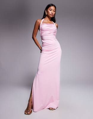 Dresses by Aria Cove Gathered design Halterneck style Side split Maxi length Bodycon fit