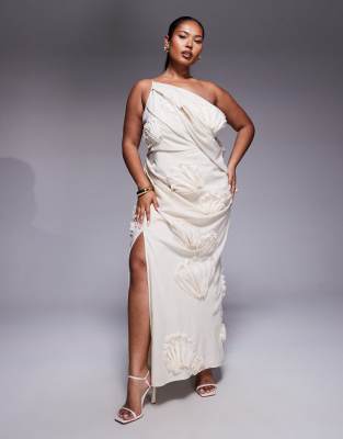 Dresses by ASOS Curve One-shoulder style Fixed straps Shell applique Side split Regular fit
