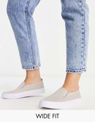 Shoes by ASOS DESIGN Wide Fit Your casualwear companions Low-profile design Pull tab for easy entry Elasticated inserts Chunky sole Textured grip tread