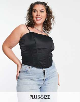 Tops by Daisy Street Plus Waist-up dressing Corset style Square neck Adjustable straps Zip-back fastening Slim fit