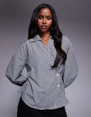 Tops by ASOS DESIGN Gingham design Spread collar Wrap front Button placket Regular fit