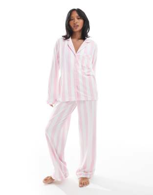 Επισκέψου το κατάστημα Asos για να δεις περισσότερες λεπτομέρειες και φωτογραφίες για το Loungeable Petite super soft jersey revere top and wide leg pyjama set with piping detail in pink stripe-Multi. Για αγορά του Loungeable Petite super soft jersey revere top and wide leg pyjama set with piping detail in pink stripe-Multi πρέπει να επισκεφτείς το κατάστημα Asos.