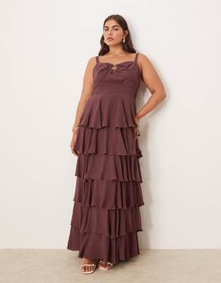 Dresses by Pretty Lavish Curve Tiered design Sweetheart neck Adjustable straps Ring detail Shirred stretch panel to back Regular fit