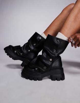 Shoes by AZALEA WANG Ankle-cut style Press-stud fastening Fold detailing Round toe Chunky sole Textured tread Low block heel