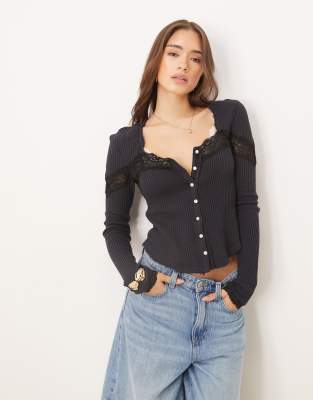 Cardigans by Free People Scoop neck Button placket Long sleeves Lace inserts Regular fit
