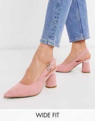 Heels by Simply Be Couple goals Slingback style Ankle-strap fastening Pointed toe Block heel Extra-wide fit