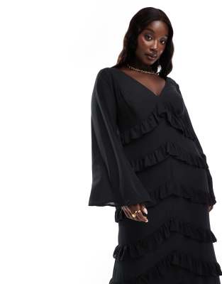 Dresses by Pretty Lavish Curve Occasions made easy V-neck Tiered ruffle design Long sleeves Tie-keyhole back Regular fit