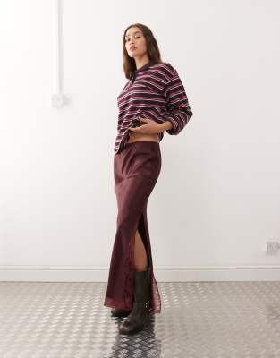Επισκέψου το κατάστημα Asos για να δεις περισσότερες λεπτομέρειες και φωτογραφίες για το Reclaimed Vintage satin midi skirt with lace trim in burgundy red. Για αγορά του Reclaimed Vintage satin midi skirt with lace trim in burgundy red πρέπει να επισκεφτείς το κατάστημα Asos.