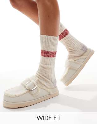 Shoes by Raid Wide Fit Your new fave pair Slip-on style Buckle detail Borg trims Square toe Chunky sole Wide fit
