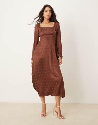 Dresses by Nobody's Child For brunch and beyond Spot design Square neck Long sleeves Shirred stretch panel to back Regular fit